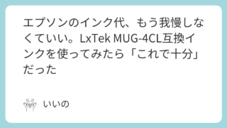 「また純正インク切れた……1本で何千円もするやつ買わなきゃいけないのか」プリンターって本体は安く買えるのに、インクでじわじわお金を取られる仕組みになってますよね。特にエプソンのEW-452AやEW-052Aを使っている人は、MUGシリーズの...
