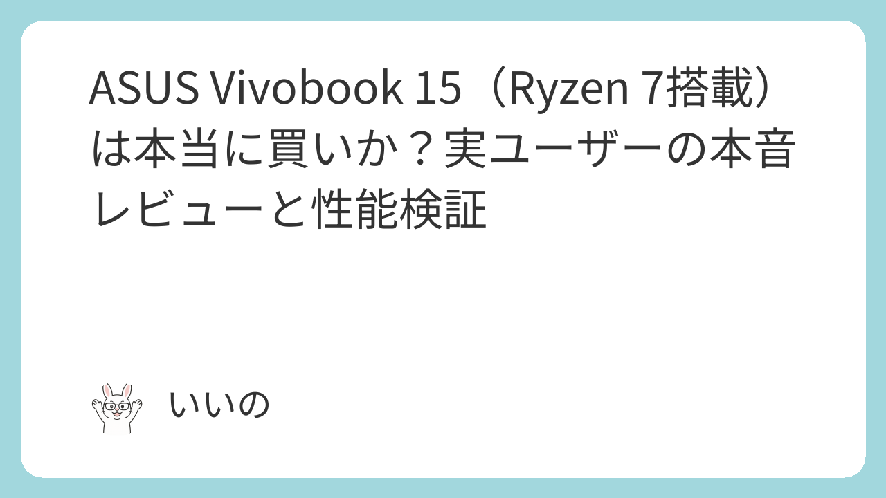 クワイエットブルーの上質な筐体に、Ryzen 7 7730Uを搭載したASUS Vivobook 15。メモリ16GB、SSD1TB、そして12.9時間のバッテリー駆動という仕様を見て、多くの人が「コスパ良さそう」と感じるだろう。