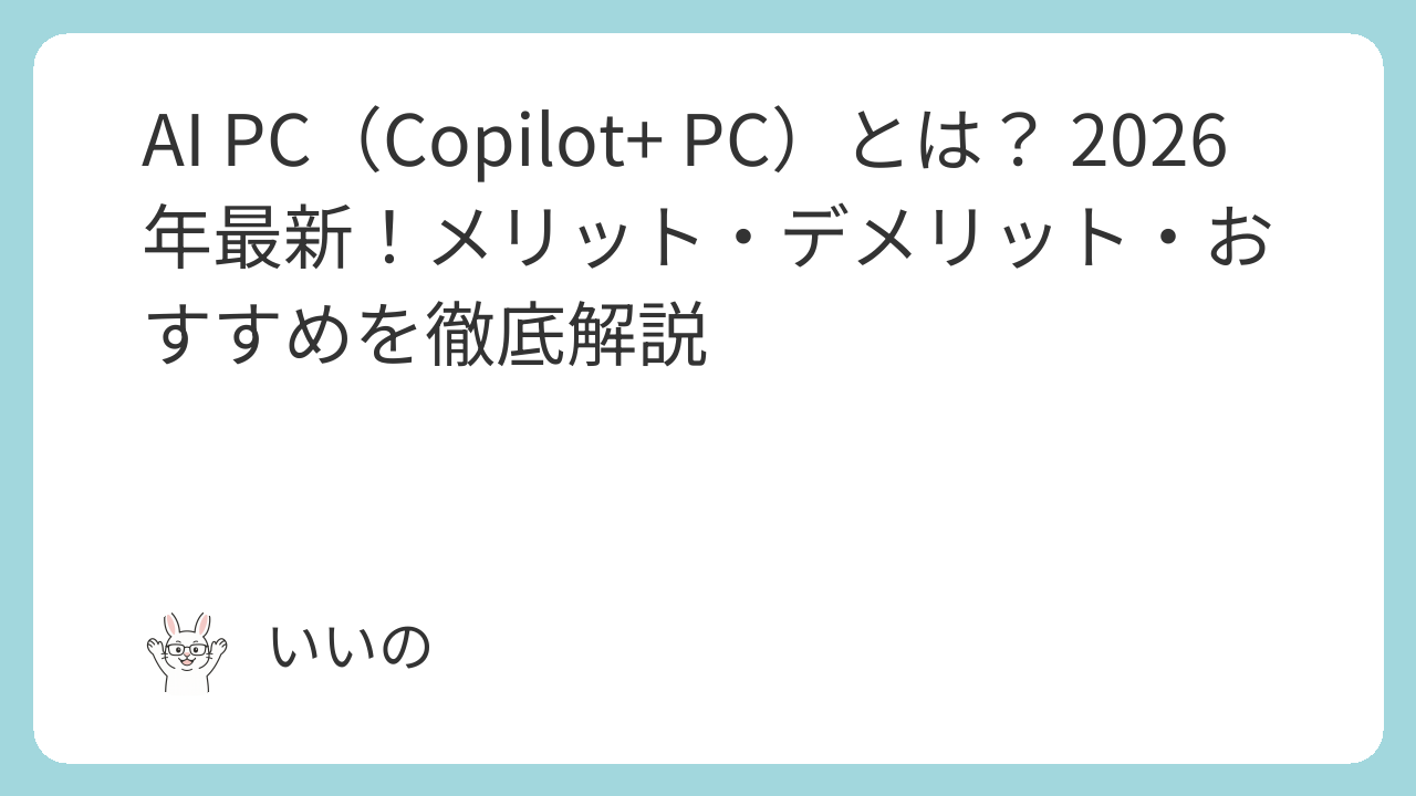 この記事は、AI PCについて調べてる人向けに、私のこれまでの知識と2026年現在の最新情報をまとめたものです。