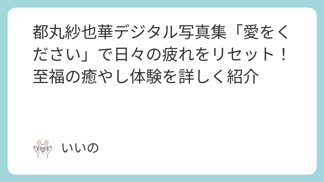 都丸紗也華さんが差し出す「愛」を、あなたは受け取りますか?