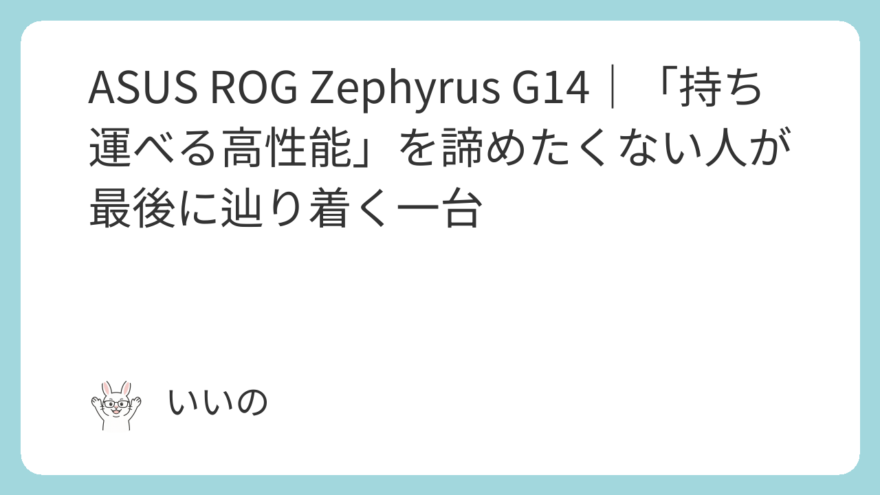 ASUS ROG Zephyrus G14|「持ち運べる高性能」を諦めたくない人が最後に辿り着く一台