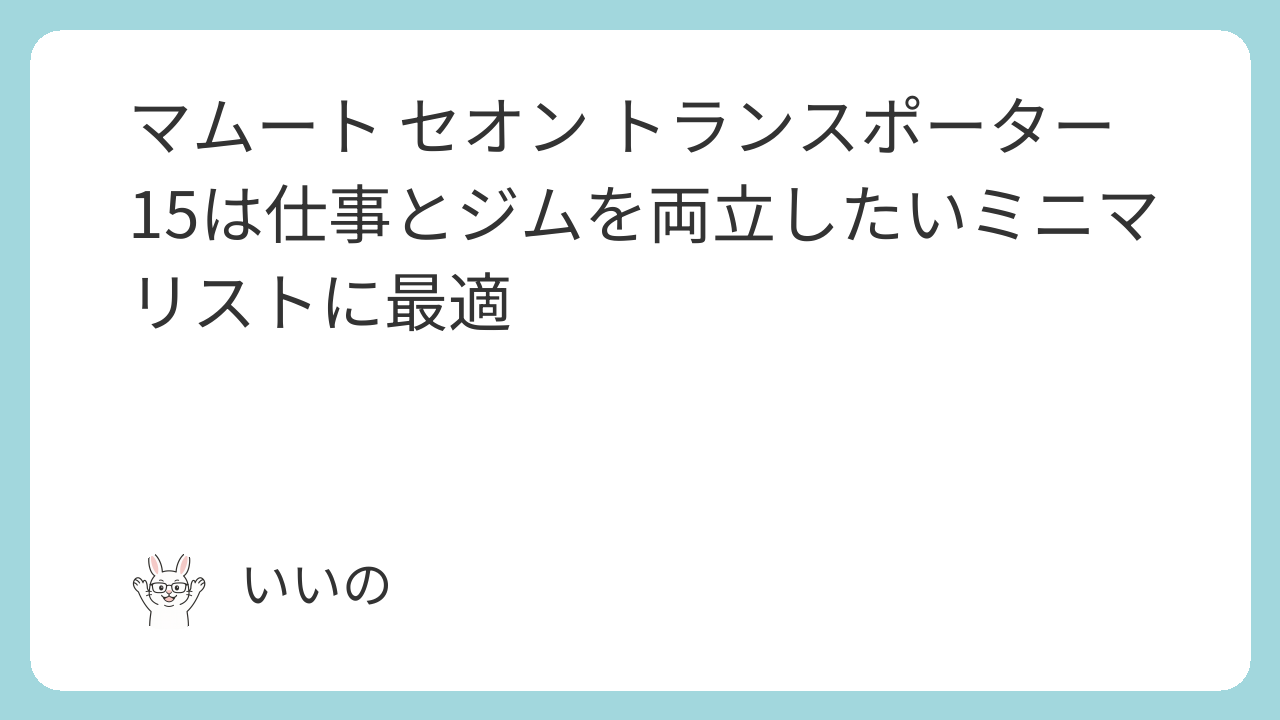 もっとスマートに、それでいて必要なものはしっかり持ち運びたい。そんなわがままな願いを叶えてくれるのが、マムートの「セオン トランスポーター 15」です。