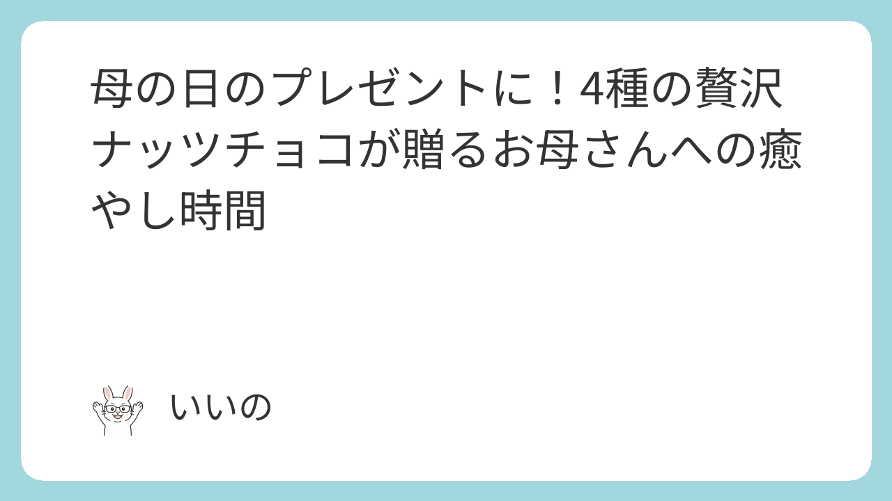 母の日のプレゼントに!4種の贅沢ナッツチョコが贈るお母さんへの癒やし時間