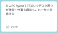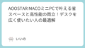 - 「デスクトップPCなのに、デスクが全く狭くならない。モニター下のデッドスペースにすっぽり収まるのが快感。」
