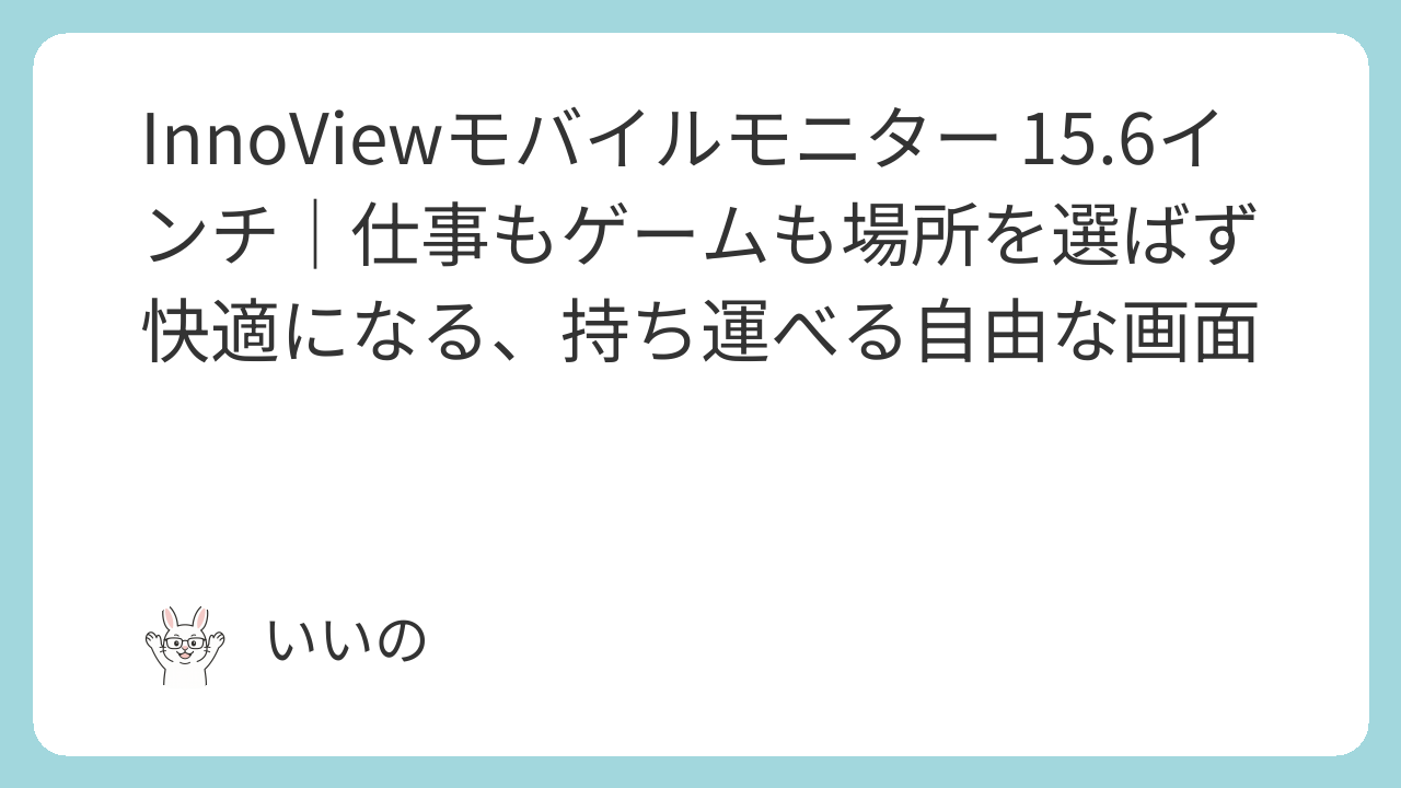InnoViewモバイルモニター 15.6インチ|仕事もゲームも場所を選ばず快適になる、持ち運べる自由な画面
