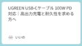 • USB Power Delivery(PD)による最大出力の急速充電を必須としている(本製品はUSB-A to Cのため、PD対応のC to Cケーブルほどの出力は出ません)。