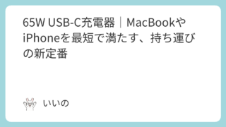 周辺機器 65W USB-C充電器|MacBookやiPhoneを最短で満たす、持ち運びの新定番