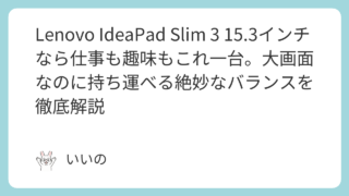 ノートPC Lenovo IdeaPad Slim 3 15.3インチなら仕事も趣味もこれ一台。大画面なのに持ち運べる絶妙なバランスを徹底解説 「今のパソコン、動きが重くてイライラする」「画面が小さくて作業がはかどらない」そんな悩み、意外と多くの人が抱えていますよね。でも、いざ買い替えようと思っても、種類が多すぎてどれを選べばいいか分からないのが本音ではないでしょうか。安すぎるとす... 2026.03.26 ノートPC