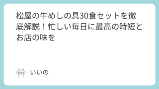 松屋の牛めしの具30食セットを徹底解説!忙しい毎日に最高の時短とお店の味を