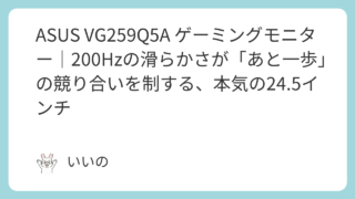 ディスプレイ ASUS VG259Q5A ゲーミングモニター|200Hzの滑らかさが「あと一歩」の競り合いを制する、本気の24.5インチ 「最近、対戦ゲームで撃ち負けることが増えた気がする」「画面が激しく動くと、敵がブレて見えにくい」そんなふうに感じて、新しいモニターを検討しているあなたの悩みは、実はセンスのせいではなく「画面の更新スピード」が追いついていないだけかもしれませ... 2026.03.29 ディスプレイ